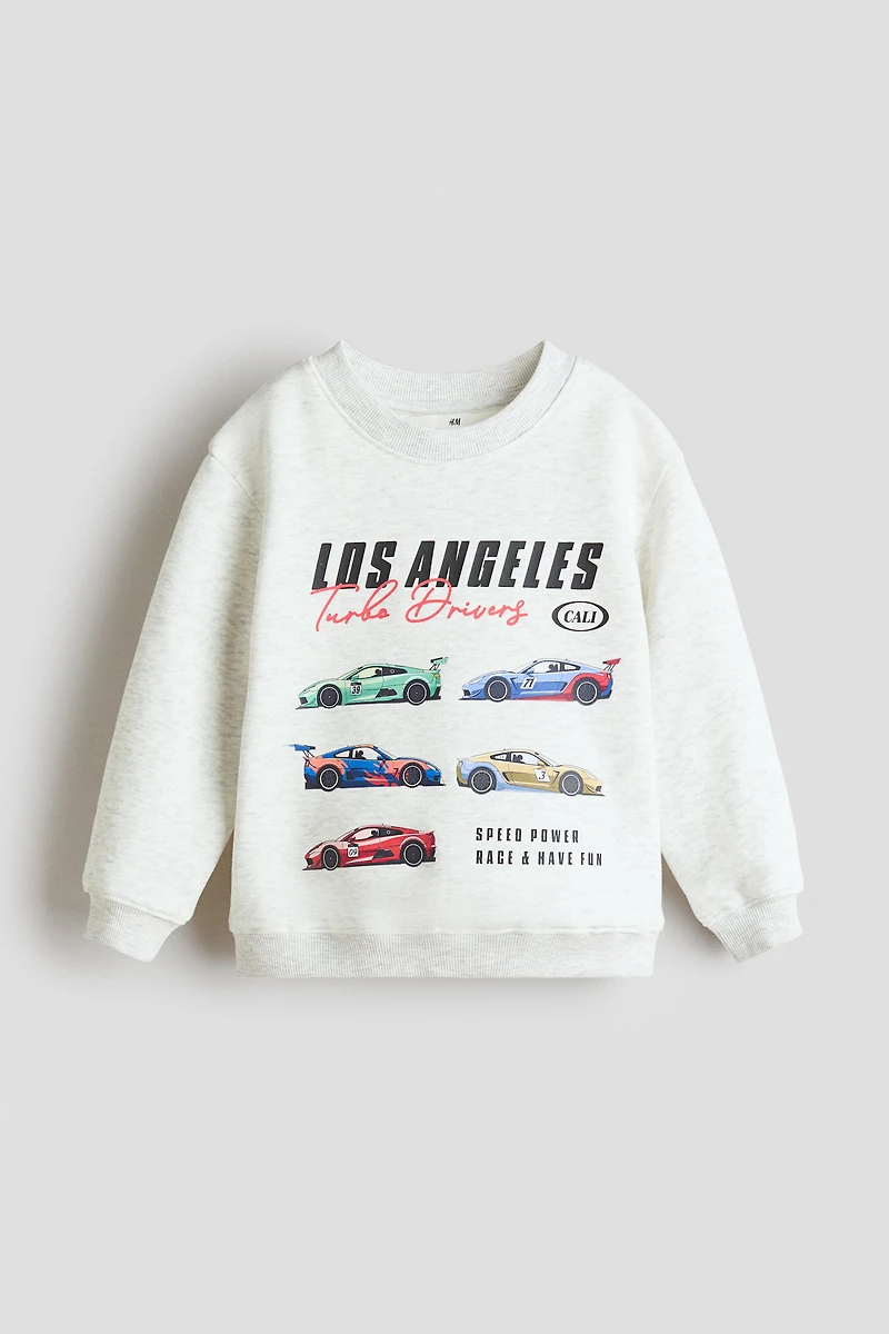 Sweatshirt with a printed design and soft, brushed inside. Round neck, dropped shoulders, and long sleeves. Ribbing at neck, cuffs, and hem.