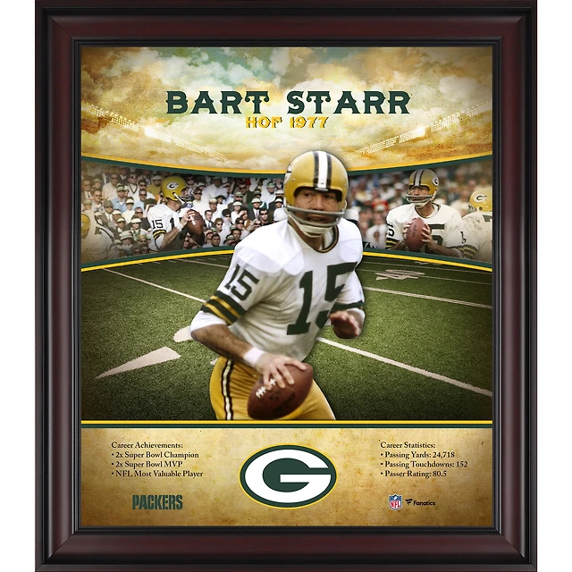 Profil de carrière encadré de Bart Starr Green Bay Packers 15" x 17" Hall of Fame