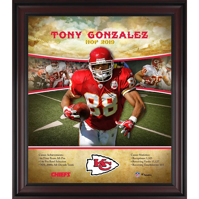 Profil de carrière encadré de Tony Gonzalez, Kansas City Chiefs, 15" x 17" au Temple de la renommée