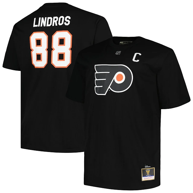 Profil pour hommes Eric Lindros Noir Philadelphia Flyers Big & Tall Captain Patch Nom et numéro T-shirt