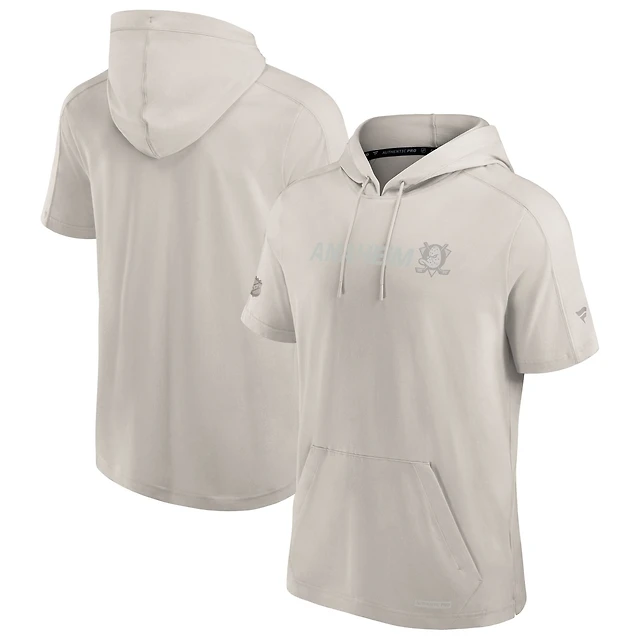 Pull à capuche manches courtes et col rond Fanatics Authentic Pro Road pour homme, gris clair, des Ducks d'Anaheim