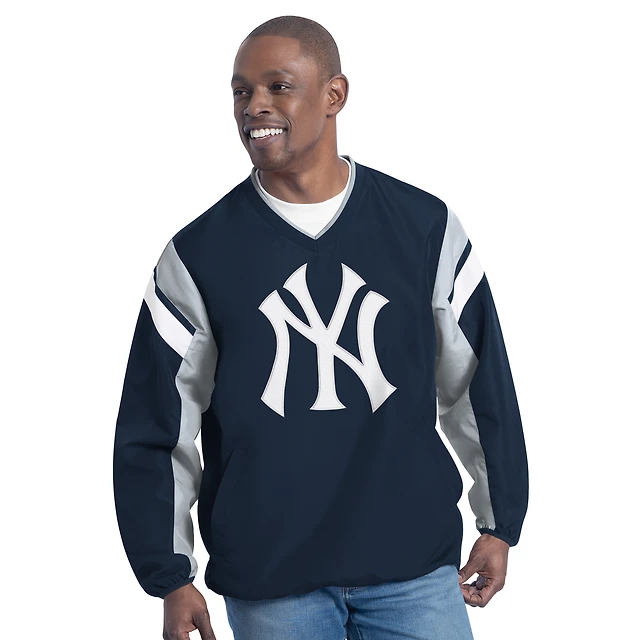 Pull à col en V double couverture G-III Sports by Carl Banks bleu marine pour homme, motif New York Yankees