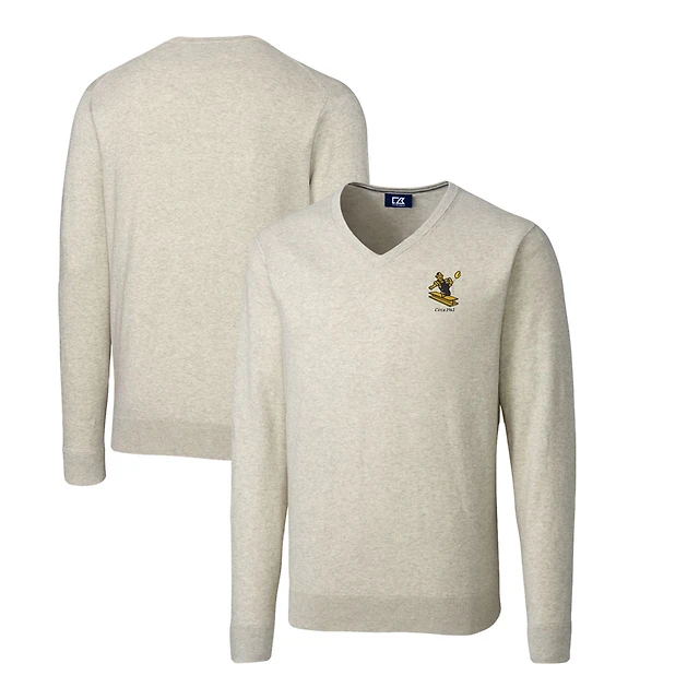 Pull à col en V pour homme Cutter & Buck Oatmeal Pittsburgh Steelers Throwback Logo Lakemont Tri-Blend Big Tall