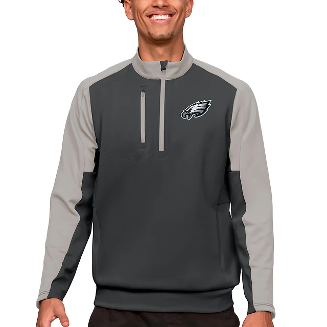 Pull à col rond zippé Antigua Charcoal pour homme des Philadelphia Eagles