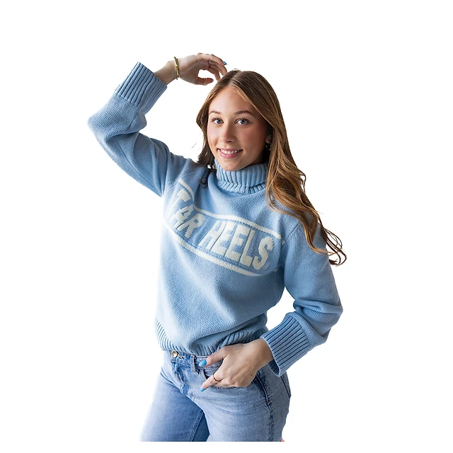 Pull à col roulé en chenille bleu Carolina Tar Heels pour femme