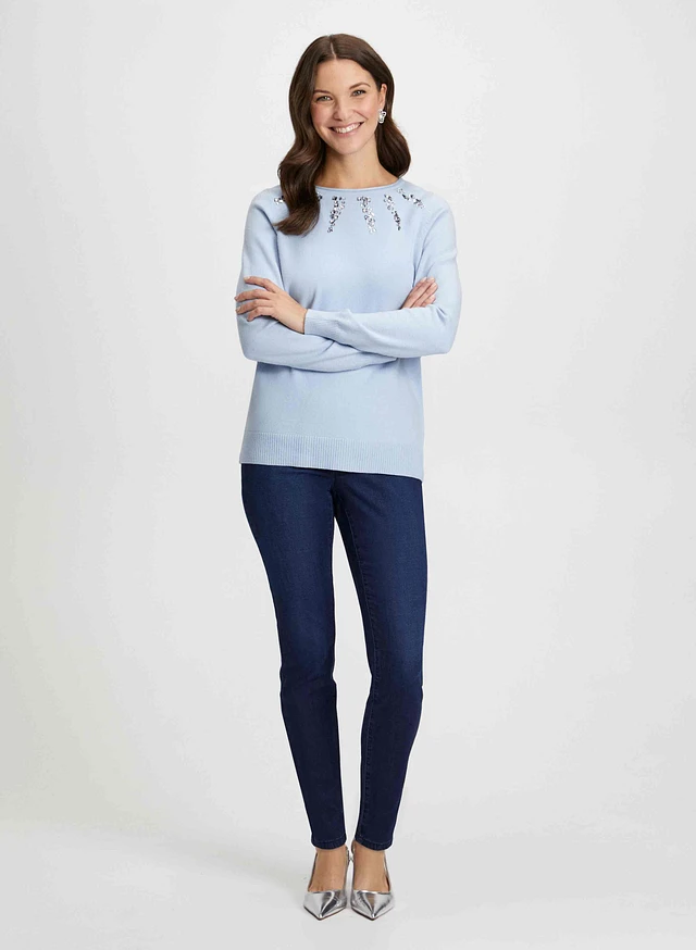 Pull à détail pierres du Rhin avec jean noir étroit