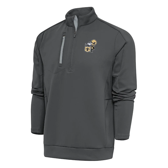 Pull à enfiler quart de zip pour homme, couleur anthracite, avec logo l'équipe des Saints la Nouvelle-Orléans, style rétro