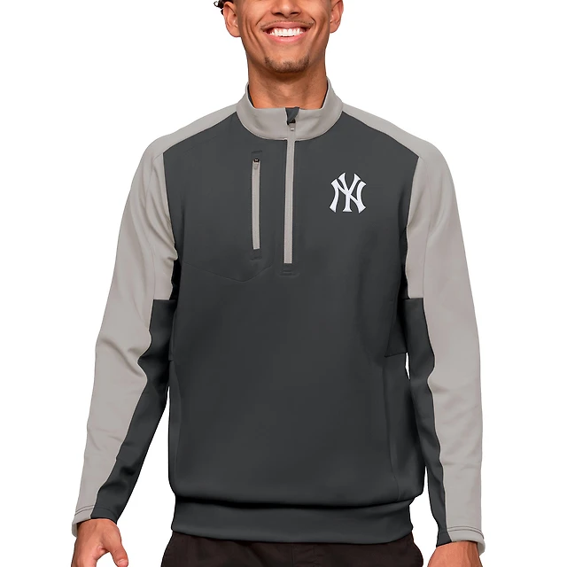 Pull à enfiler quart de zip pour homme, couleur anthracite, équipe des Yankees New York