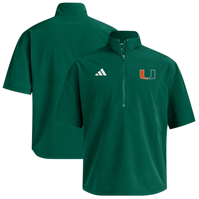 Pull à manches courtes tissé zippé adidas vert Miami Hurricanes pour homme