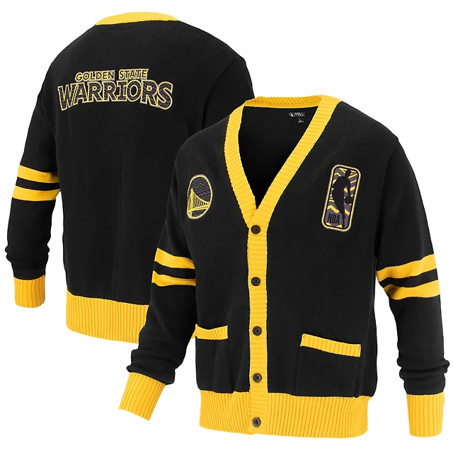 Pull cardigan unisexe FISLL noir Golden State Warriors Logoman Shadow Collection à boutons complets