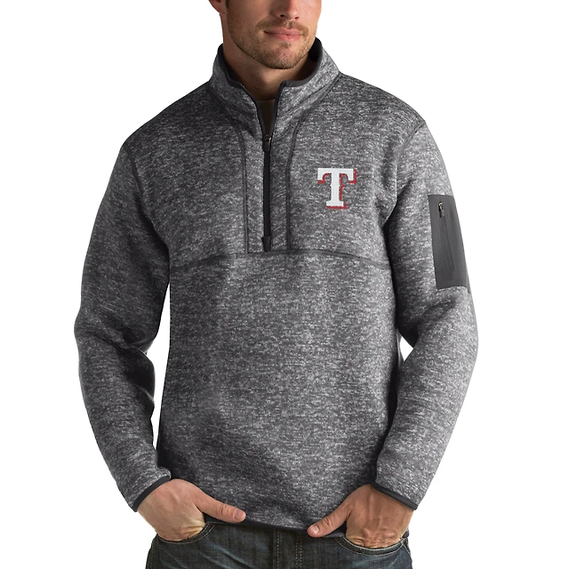 Pull demi-zippé Fortune Texas Rangers en charbon chiné Antigua pour homme