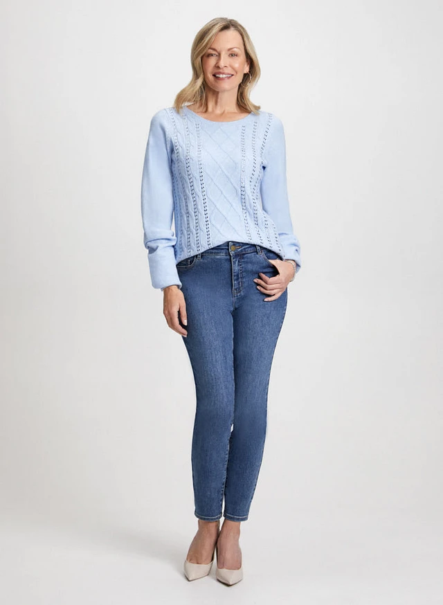 Pull en maille torsadée et jean étroit