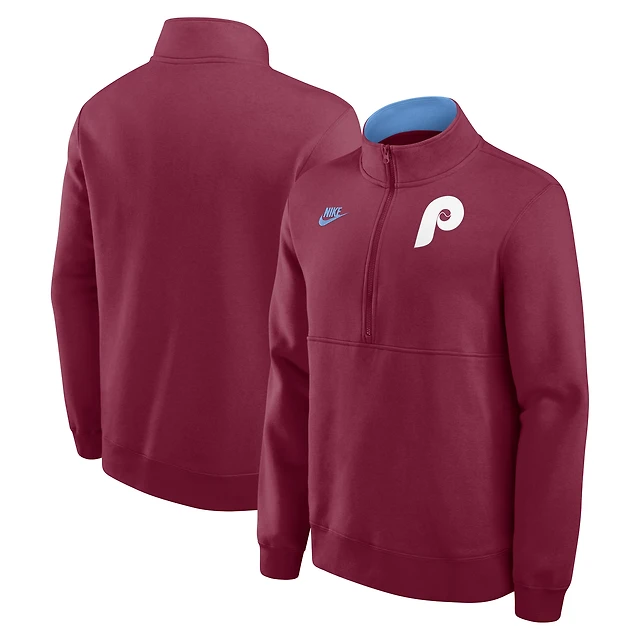 Pull en molleton demi-zippé Nike bordeaux pour homme des Philadelphia Phillies Cooperstown Collection