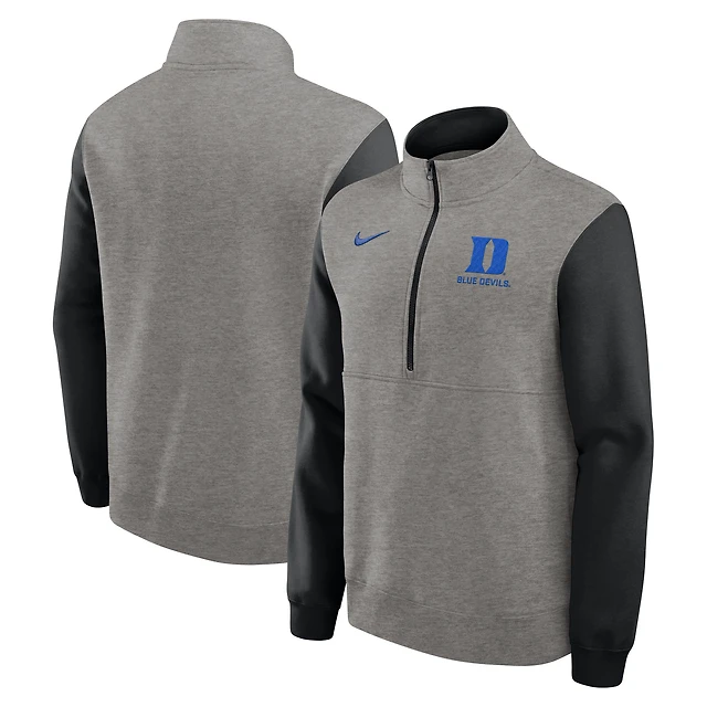 Pull en molleton demi-zippé Nike Duke Blue Devils Club gris chiné/noir pour homme