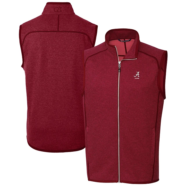 Pull en polaire à fermeture éclair intégrale pour homme, modèle Cutter & Buck Heather Crimson Alabama Tide Alumni Logo Mainsail