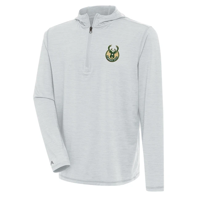 Pull léger à fermeture éclair quart de tour Antigua Heather Grey Milwaukee Bucks pour homme