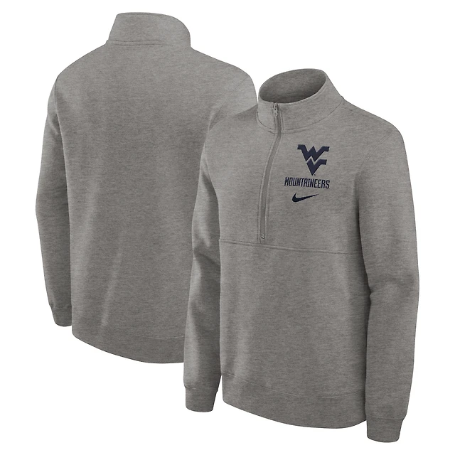 Pull Nike gris chiné pour homme, Primetime Club, demi-zippé, des West Virginia Mountaineers