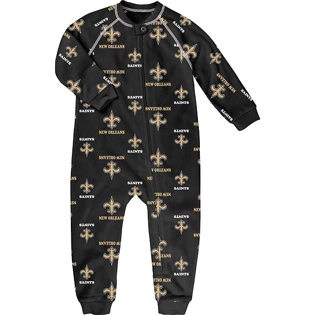 Pull noir à imprimé raglan et fermeture éclair sur toute la surface pour tout-petits des New Orleans Saints