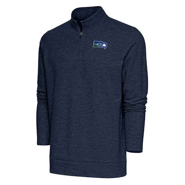 Pull-over à fermeture éclair quart de tour Gambit rétro pour homme, bleu marine chiné, logo l'équipe des Seattle Seahawks