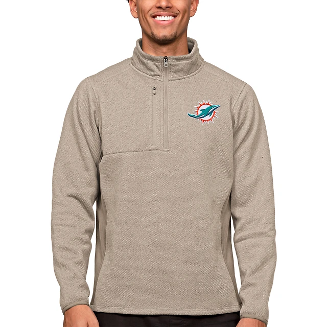 Pull-over à fermeture éclair quart de tour pour homme Antigua Oatmeal Miami Dolphins