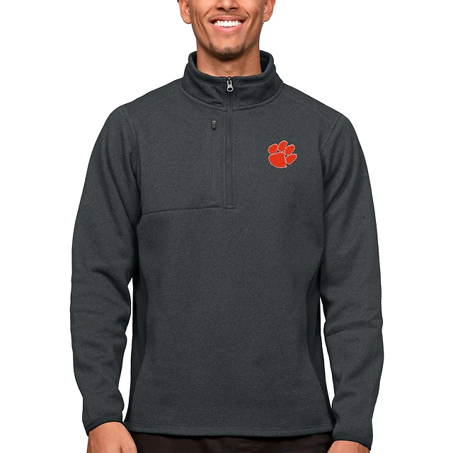 Pull-over à fermeture éclair quart de tour pour homme, couleur charbon chiné, des Tigers Clemson