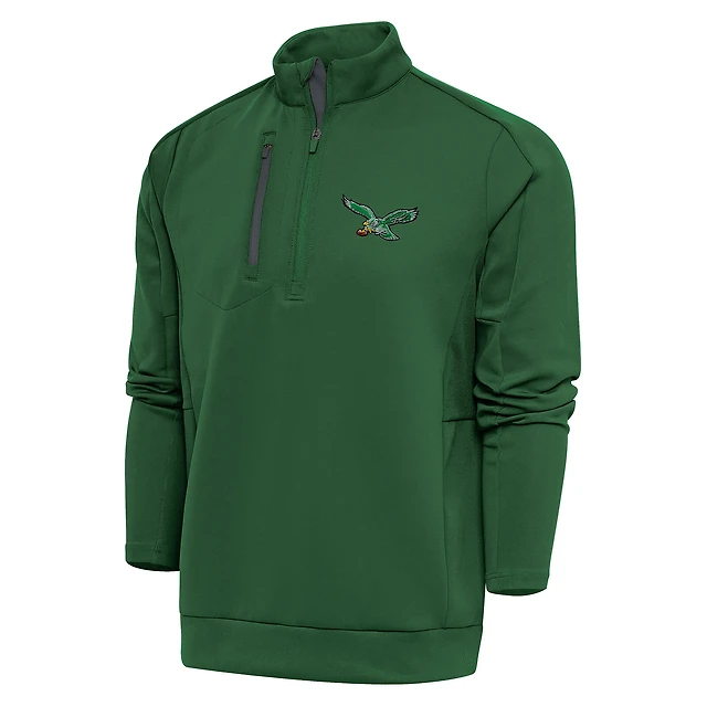 Pull-over à fermeture éclair quart de tour pour homme, vert Antigua, avec logo l'équipe des Philadelphia Eagles
