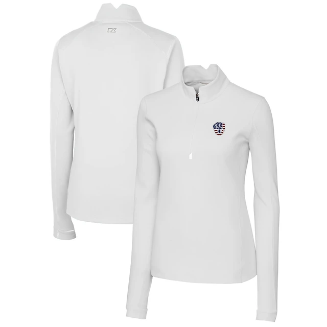 Pull-over blanc à fermeture éclair quart de tour pour femme Cutter & Buck avec logo Americana des Milwaukee Brewers DryTec Traverse Stretch