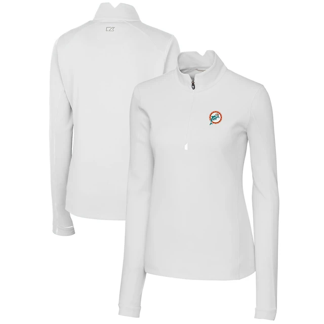 Pull-over blanc à fermeture éclair quart de tour pour femme Cutter & Buck avec logo rétro des Dolphins Miami