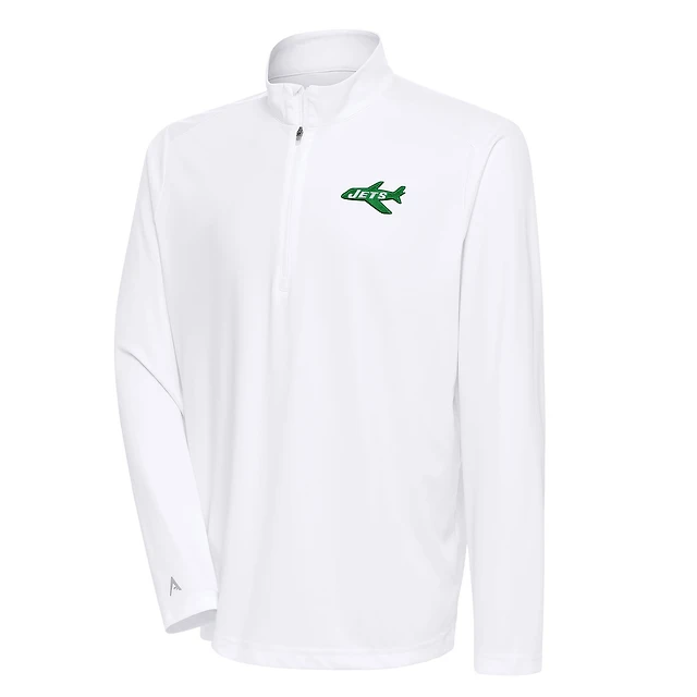 Pull-over blanc Antigua pour homme avec logo rétro des Jets de New York, à fermeture éclair quart tour
