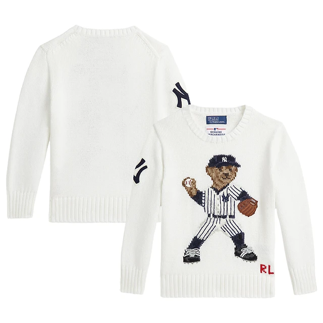 Pull-over blanc Polo Ralph Lauren pour tout-petit avec ours des Yankees