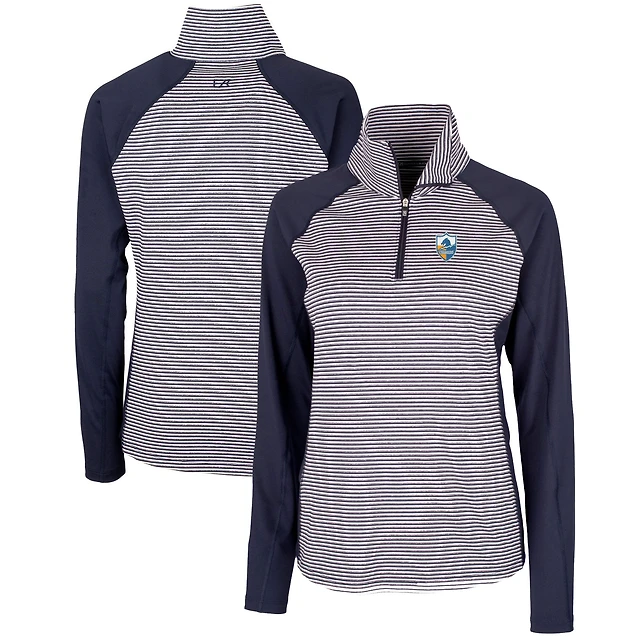 Pull-over extensible à demi-zip et rayures ton sur avec logo rétro des Los Angeles Chargers pour femme, bleu marine, Cutter & Buck