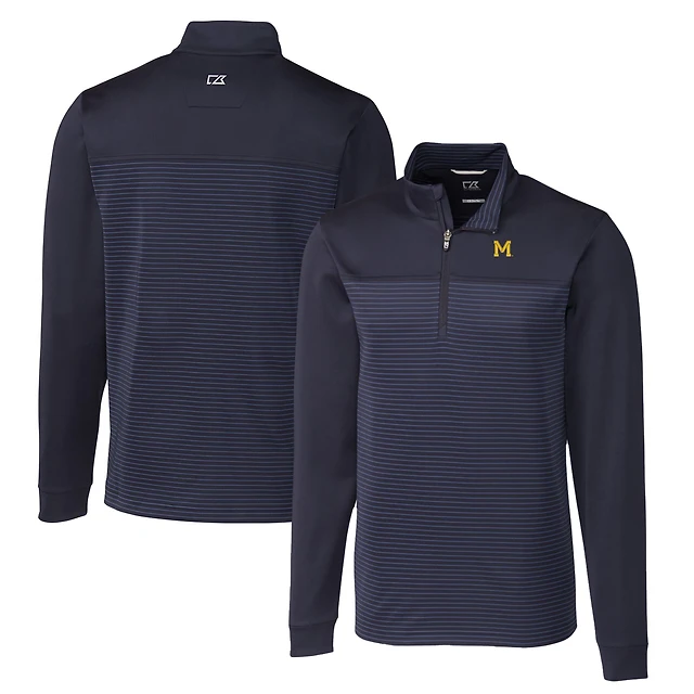 Pull-over extensible à rayures Traverse et fermeture éclair quart de tour pour homme, bleu marine, des Michigan Wolverines, grande taille