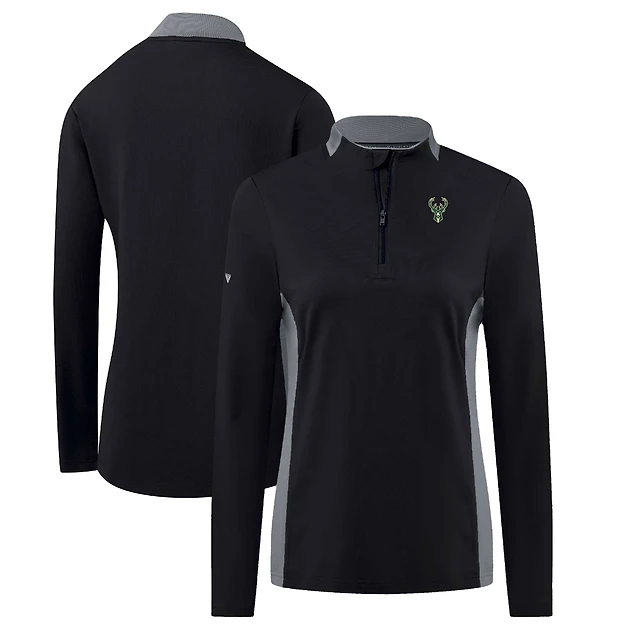 Pull-over noir à fermeture éclair quart de tour Moxie Insignia Core pour femme des Milwaukee Bucks Levelwear