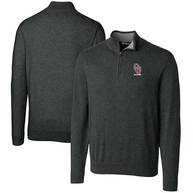 Pull-over zippé Lakemont Tri-Blend pour homme, couleur charbon chiné, avec logo des anciens élèves Sooners de l'Oklahoma, Cutter & Buck