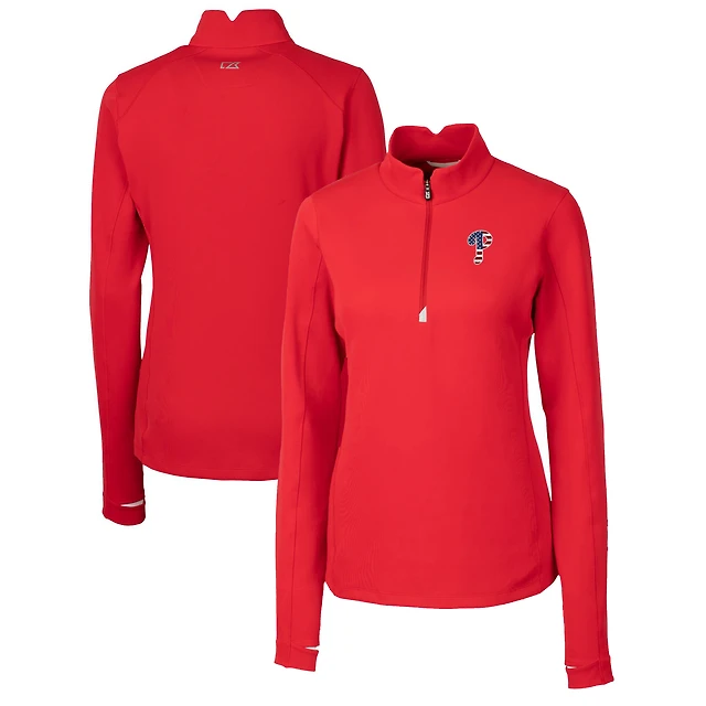 Pull-over zippé quart de tour DryTec Traverse Stretch pour femme, rouge, avec logo Americana des Philadelphia Phillies Cutter & Buck