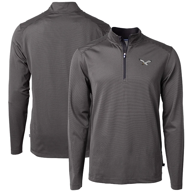 Pull-over zippé quart de tour en piqué recyclé à micro-rayures et des Philadelphia Eagles, gris, Cutter & Buck, pour homme