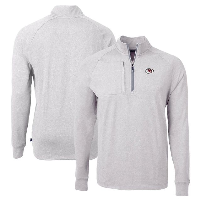 Pull-over zippé quart de tour en tricot écologique Adapt pour homme, gris chiné, des Kansas City Chiefs, Cutter & Buck