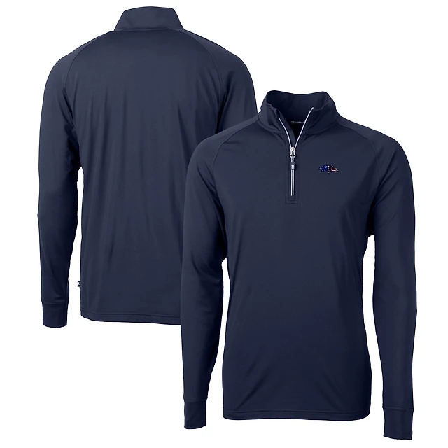 Pull-over zippé quart de tour en tricot extensible recyclé Adapt Eco Knit pour homme, bleu marine, des Baltimore Ravens, taille grande et