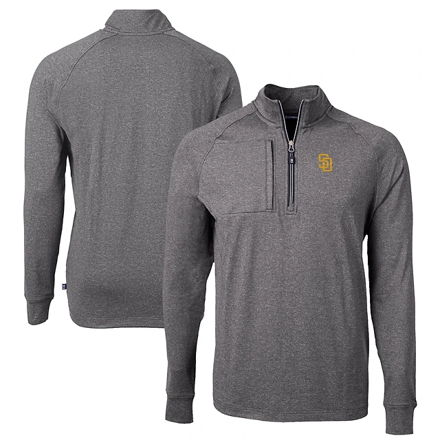 Pull-over zippé quart de tour en tricot extensible recyclé Adapt Eco Knit pour homme, noir chiné, des Padres San Diego, grande taille