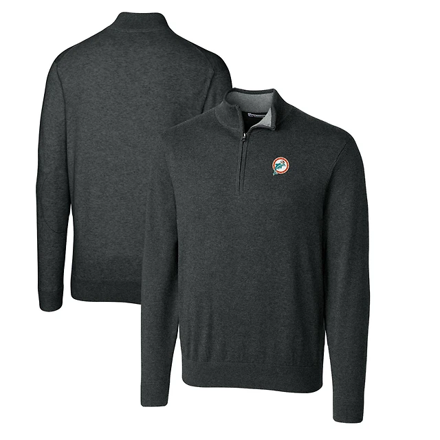 Pull-over zippé quart de tour pour homme, couleur anthracite chiné, coupe Cutter & Buck, logo rétro des Dolphins Miami, Lakemont Tri-Blend, grande taille