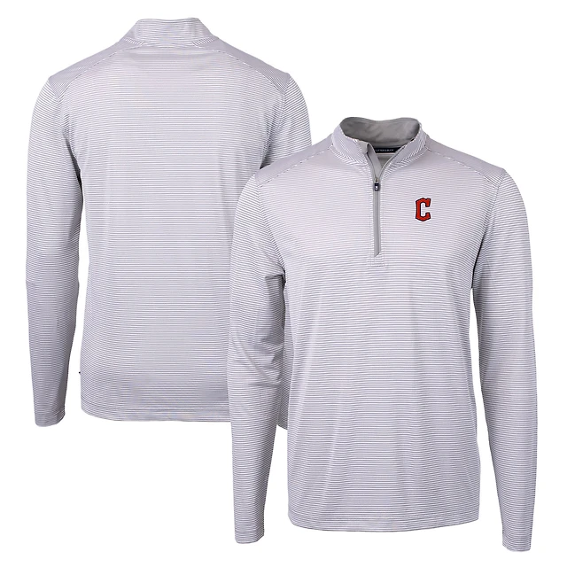 Pull-over zippé recyclé à micro-rayures et col rond pour homme, gris/blanc, Cutter & Buck, des Cleveland Guardians, Virtue Eco Pique, de grande taille