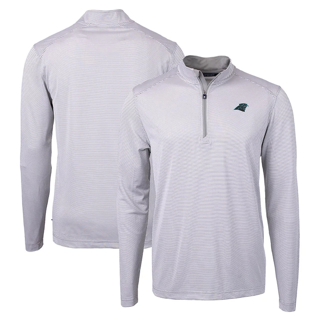 Pull-over zippé recyclé à micro-rayures et piqué écologique pour homme, gris/blanc, des Carolina Panthers, Cutter & Buck
