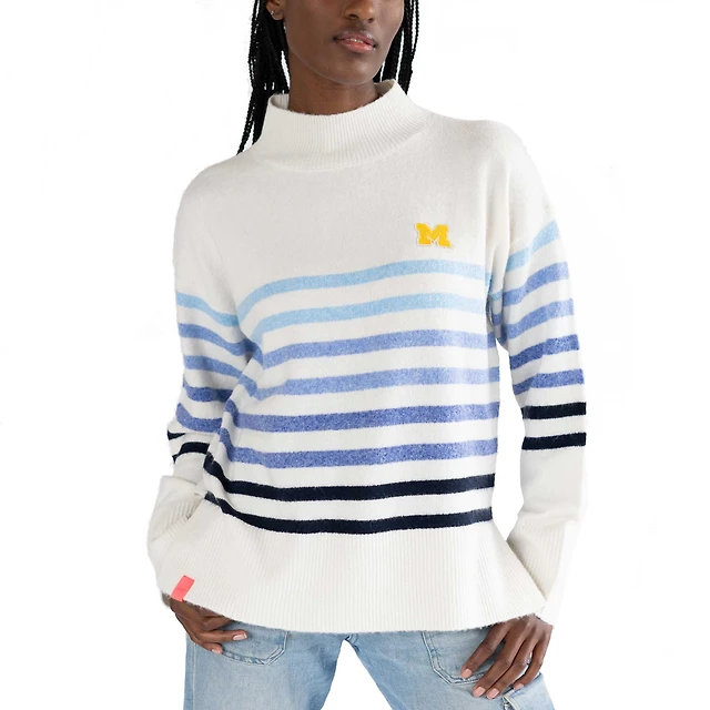 Pull oversize à col montant Simone Striple Michigan Wolverines pour femme de Lusso White