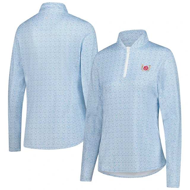 Pull Peter Millar bleu clair à imprimé Kentucky Derby Jockey et fermeture éclair quart de tour pour femme