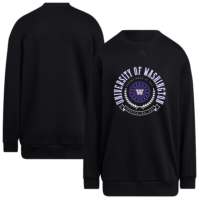 Pull ras du cou oversize noir des Washington Huskies pour femme adidas