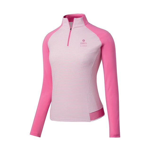 Pull rayé à col raglan et fermeture éclair quart de tour pour femme FootJoy Pink The Zurich Classic