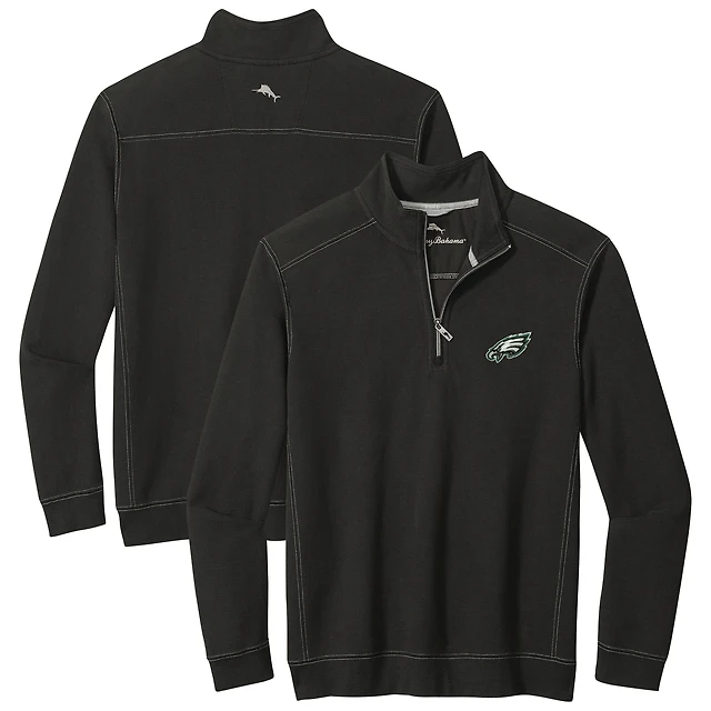 Pull Tommy Bahama noir pour homme, coupe grande et grande, style demi-zippé, des Philadelphia Eagles, Montego Bay