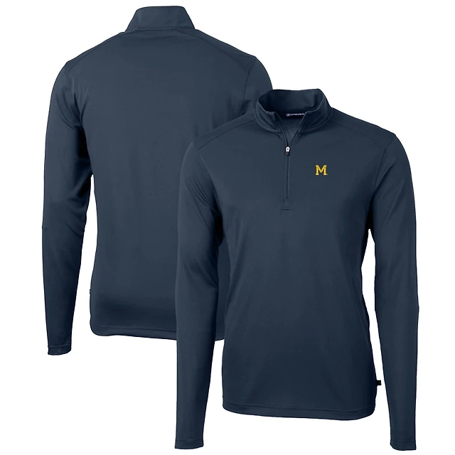 Pull zippé en piqué écologique recyclé pour homme, couleur bleu marine, de l'équipe des Wolverines du Michigan, grande taille, Virtue