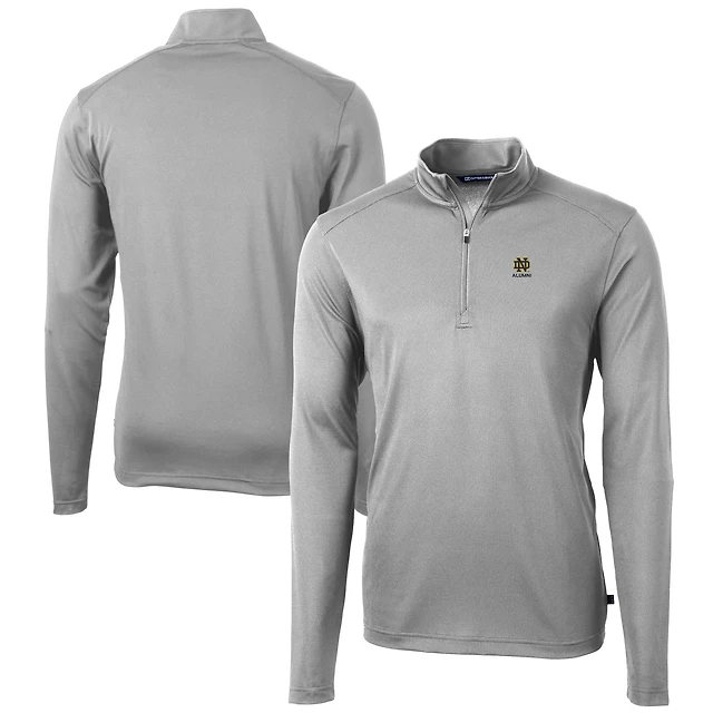 Pull zippé en piqué écologique recyclé pour homme, gris, avec logo des anciens élèves Fighting Irish de Notre Dame, Cutter & Buck