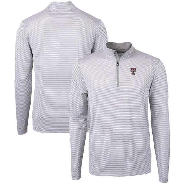 Pull zippé recyclé à micro-rayures et col rond pour homme, couleur gris/blanc, Texas Tech Red Raiders, Virtue Eco Pique, taille grande